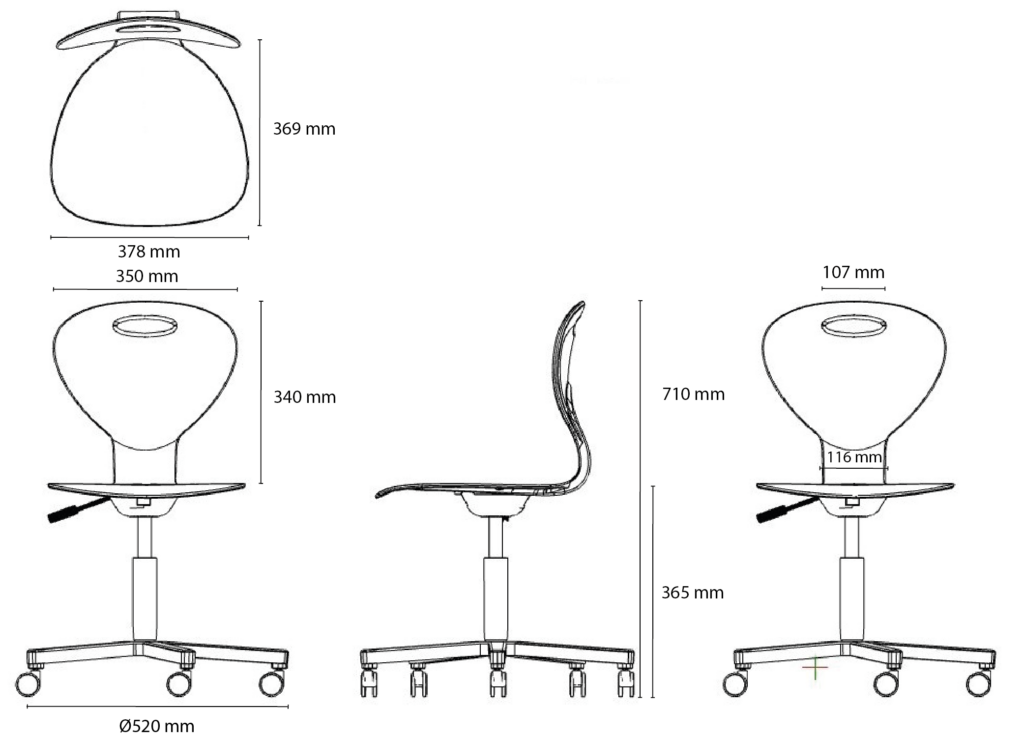 The swivel chair features a height-adjustable gas lift and wheels with automatic breake. Experience the freedom of a versatile chair designed to adapt to any situation, student and teacher.