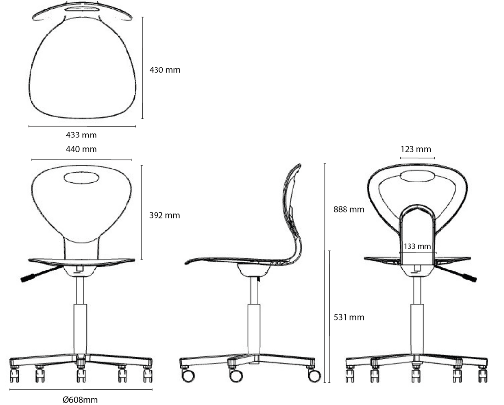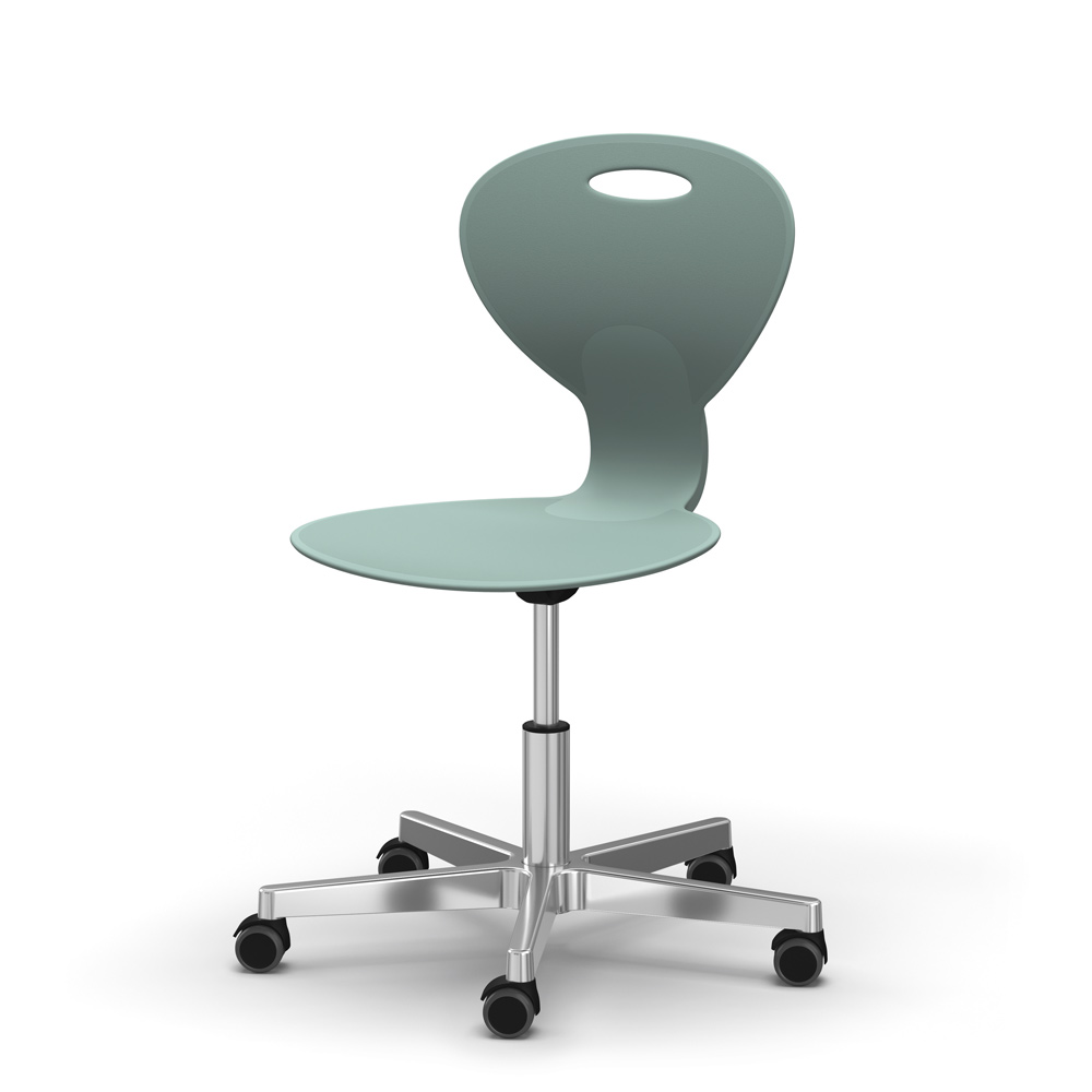 The swivel chair features a height-adjustable gas lift and wheels with automatic breake. Experience the freedom of a versatile chair designed to adapt to any situation, student and teacher.