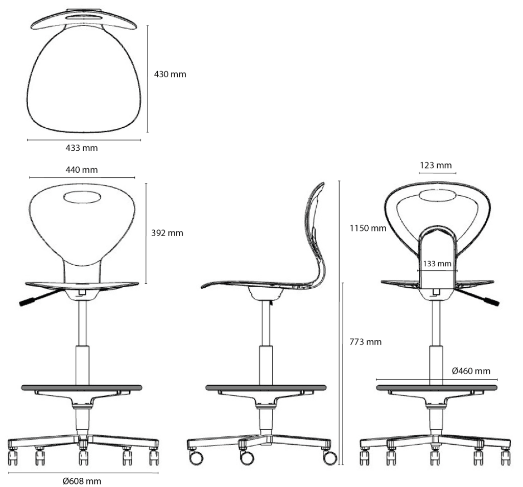 The swivel chair features a height-adjustable gas lift and wheels with automatic breake. Experience the freedom of a versatile chair designed to adapt to any situation, student and teacher.